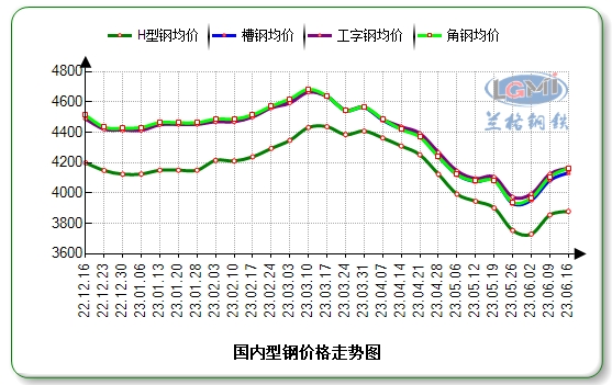 6月16日国内型钢价格主稳偏强运行,期螺持红震荡,市场交投氛围缓和,今日成交表现尚可。