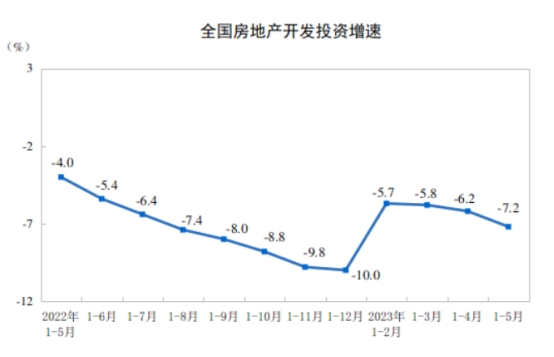 1—5月份,房地产开发企业房屋施工面积779506万平方米,同比下降6.2%。其中,住宅施工面积548475万平方米,下降6.5%。房屋新开工面积39723万平方米,下降22.6%。其中,住宅新开工面积29010万平方米,下降22.7%。房屋竣工面积27826万平方米,增长19.6%。其中,住宅竣工面积20194万平方米,增长19.0%。各地持续推进“保交楼”行动,房地产开发投资出现“高竣工、低开工”现象,房地产企业投资意愿较弱。