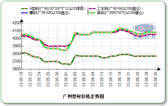 据兰格云商平台监测数据显示:今日广州市场鑫达产16#工字钢价格为4050元,唐山产16#槽钢价格为4080元,唐山产5#角钢价格为4080元,津西产200×200H型钢价格为 3770元,以上价格均较昨日持平。
