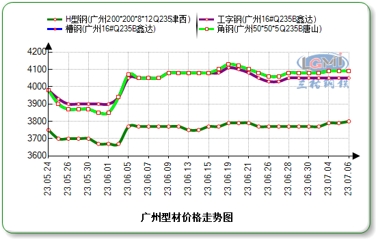 据兰格云商平台监测数据显示:今日广州市场鑫达产16#工字钢价格为4050元,唐山产16#槽钢价格为4090元,唐山产5#角钢价格为4090元,津西产200×200H型钢价格为 3800元,涨10元。