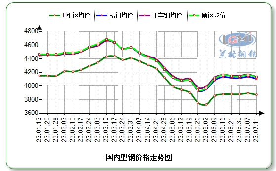 截至7月11日,国内市场25#工字钢平均价格为4074元,较上一工作日统计价格降6元;25#槽钢平均价格为4162元,较上一个工作日统计价格降7元;5#角钢均价为4039元,较上一个工作日统计价格降5元;200×200H型钢平均价格为3746元,较上一个工作日统计价格降6元。
