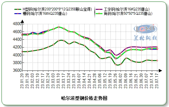 据兰格云商平台监测数据显示:今日哈尔滨市场16#工字钢价格为4210元;16#A槽钢价格为4150元;5#角钢价格为4170元;200×200H型钢价格为3860元(国标检尺价格)。