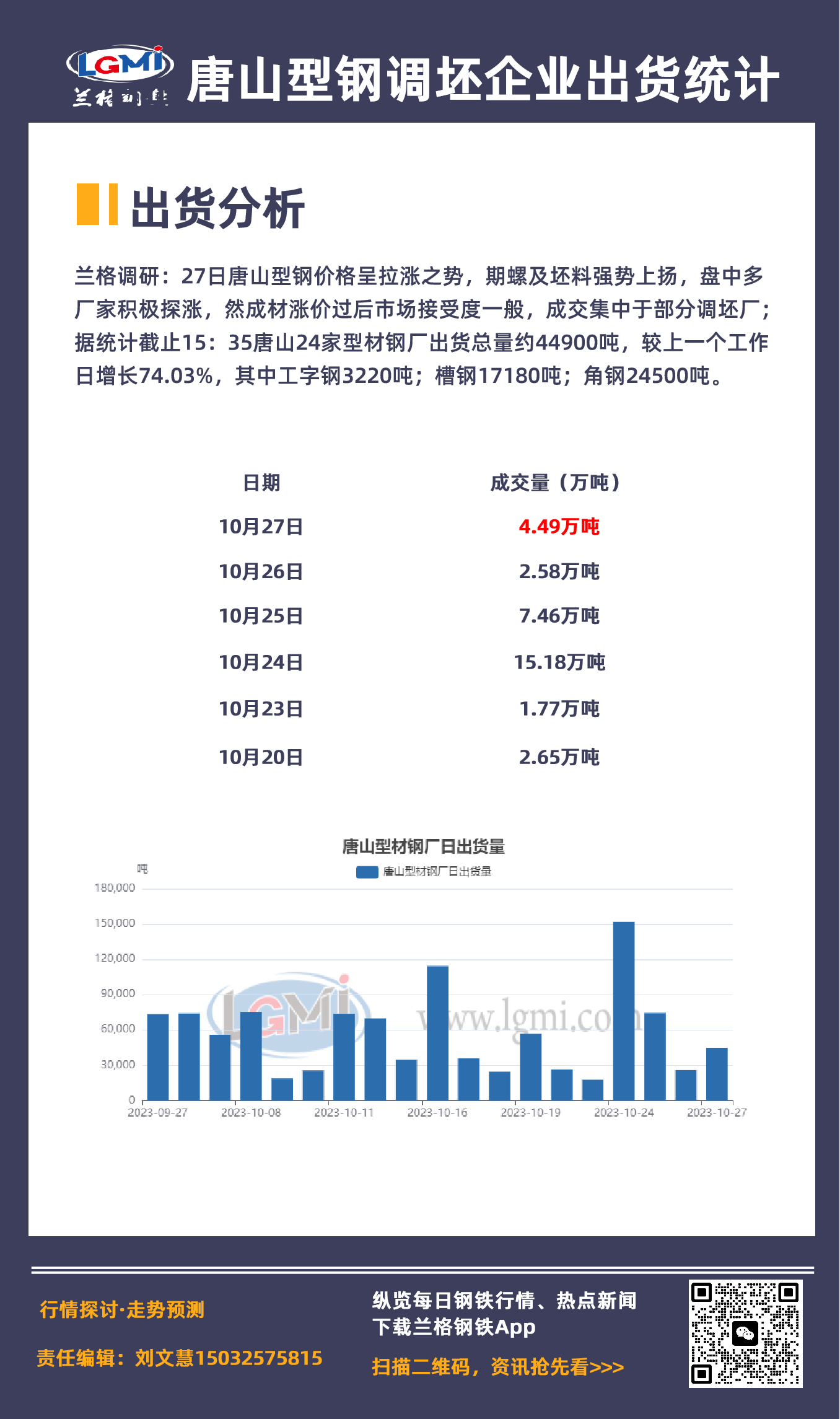 https://www.lgmi.com    发表日期:2023/10/27 15:41:08  兰格钢铁刘文慧