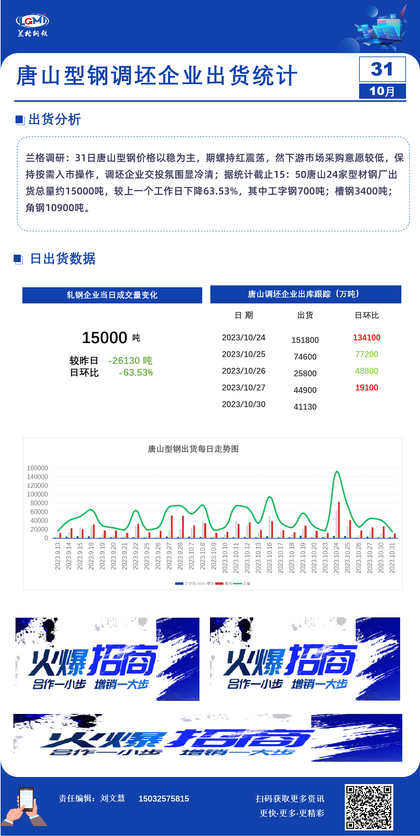 • 兰格调研:唐山型钢调坯企业日出货统计