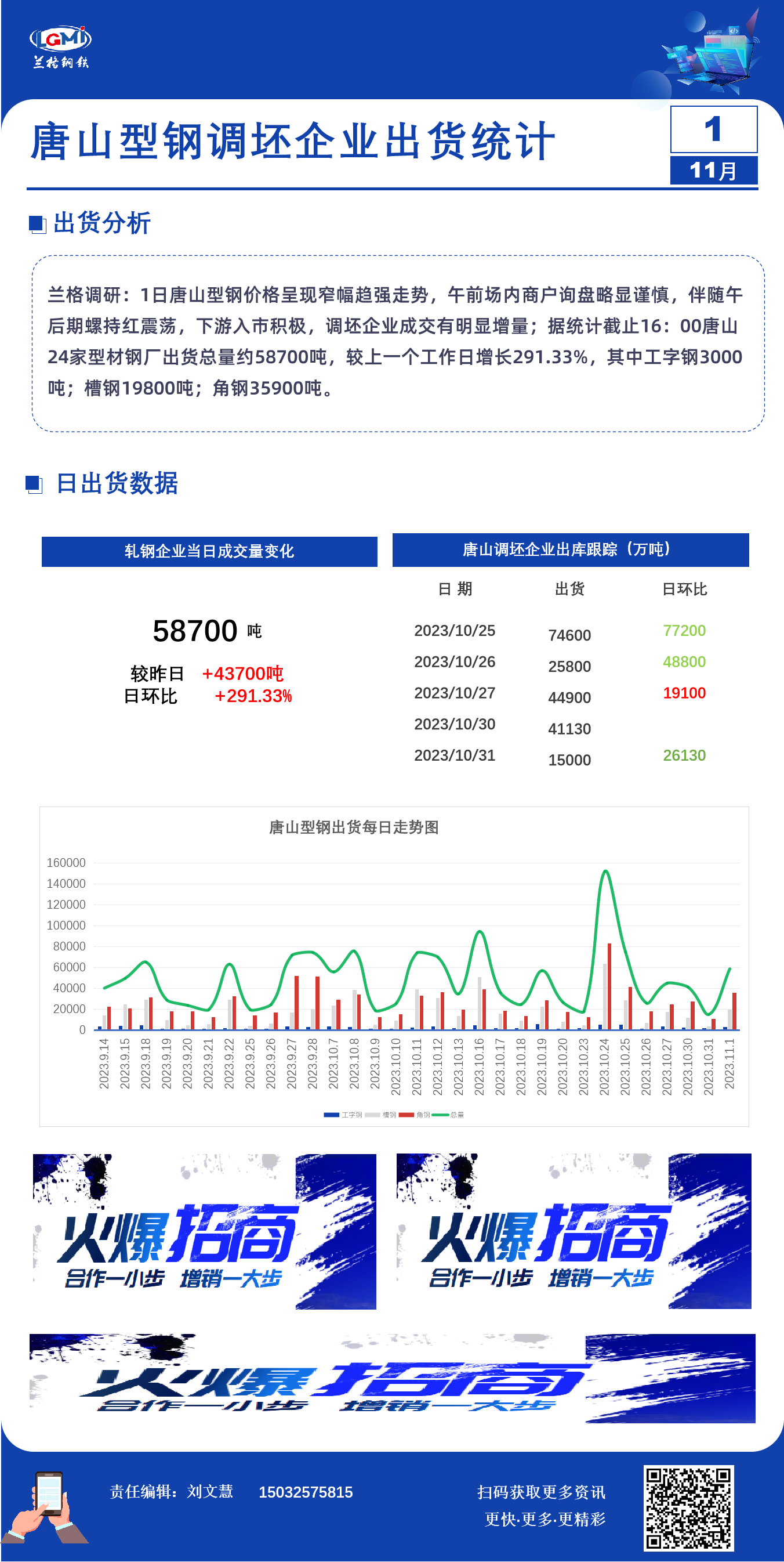 • 兰格调研:唐山型钢调坯企业日出货统计