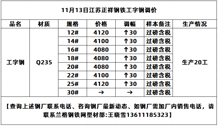 • 11月13日江苏正祥工字钢价格周末累涨30元