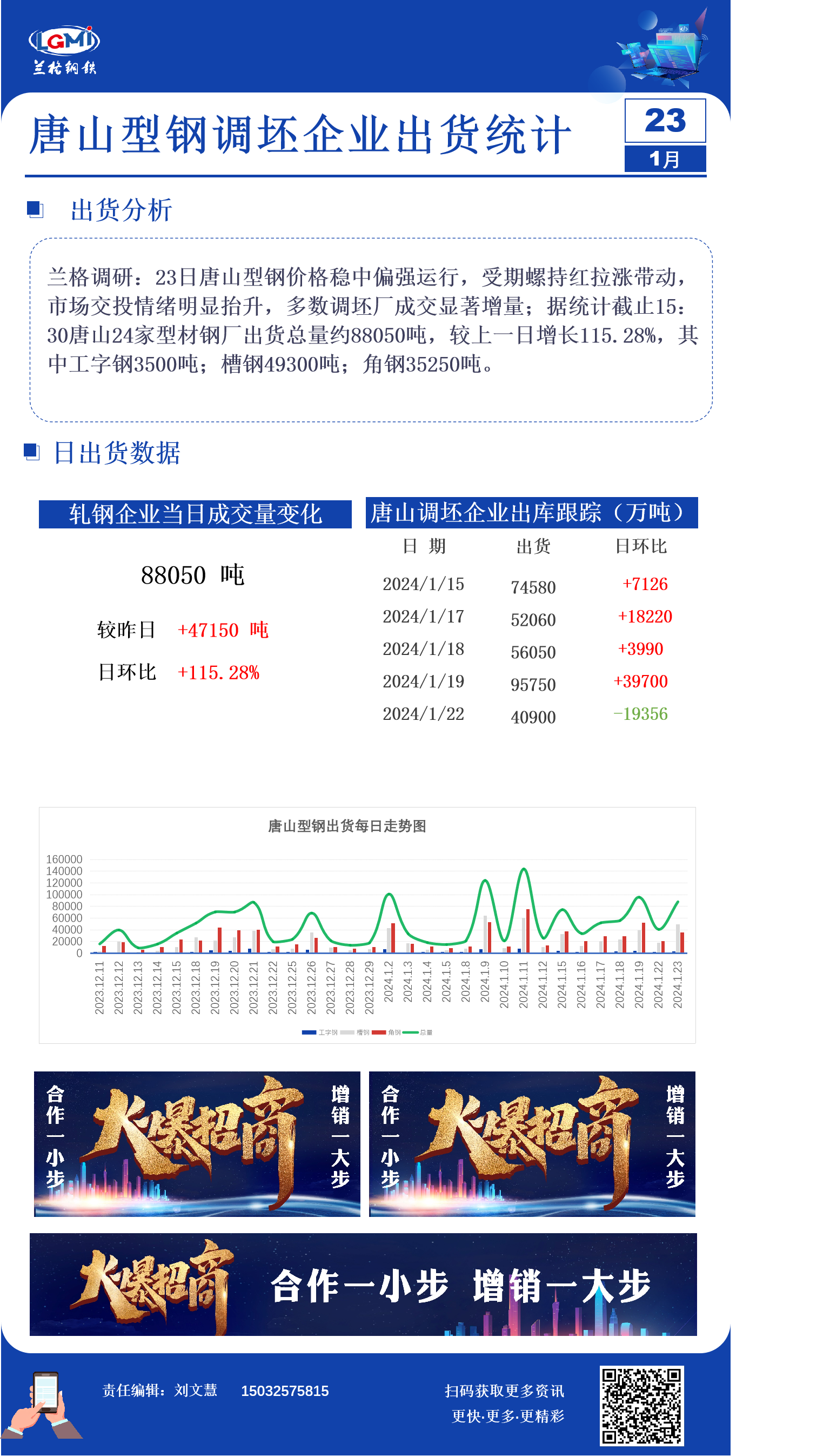 • 兰格调研:23日唐山型钢调坯企业出货统计