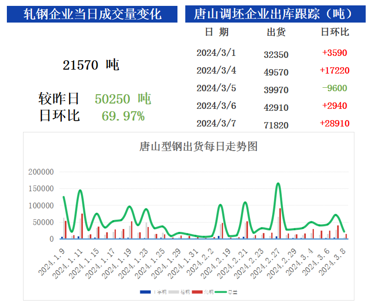 兰格调研:8日唐山型钢价格部分下调,期螺盘中虽有反复,但最终仍以收跌为主,现货成交氛围偏清淡;据统计截止15:30唐山24家型材钢厂出货总量约21570吨,较上个成交日下降69.97%,其中工字钢900吨;槽钢5660吨;角钢15010吨。