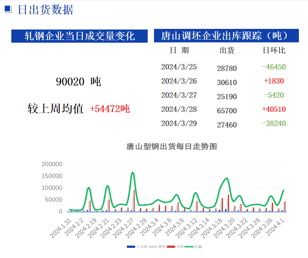 兰格调研:1日唐山型钢价格探底回升,期螺主力尾盘强势拉升,据统计截止15:30唐山24家型材钢厂出货总量约90020吨,较上周均值增幅153.23%,其中工字钢7100吨;槽钢38660吨;角钢44260吨。