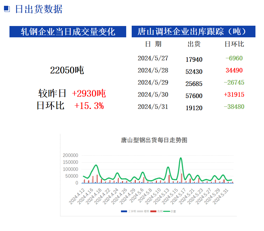兰格调研:据统计截止15:30唐山24家型材钢厂出货总量约22050吨,较上一交易日涨幅15.3%,其中工字钢1500吨;槽钢9850吨;角钢10700吨。