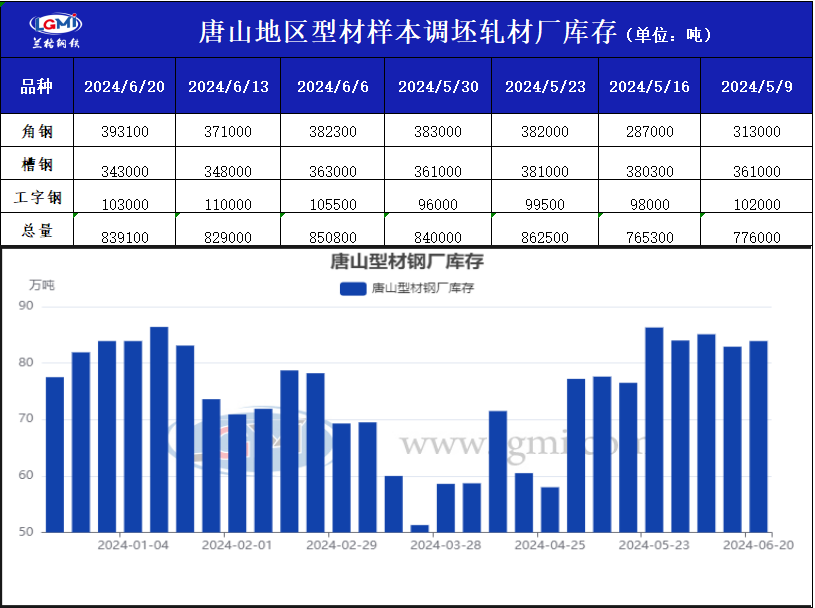 本周样本轧钢企业检修轧线减少4条,唐山地区样本轧钢企业型钢成品库存在83.91万吨左右,库存相比上周增加10100吨。本周唐山型钢市场价格整体下跌,主要品种价格周环比下跌20-30元之间。成本端唐山迁安普方坯价格执行3380元含税出厂,周环比下跌10元,成材价格下跌快于原料,轧钢厂即期利润收缩,亏损扩大。同时统计本周唐山24家型材钢厂出货总量为249330吨,平均日出货量为49866吨,日平均出货量相比上周减少8634吨,本周期货市场期螺持续下跌也加重了市场的观望情绪,加上进入传统需求淡季,终端需求比较弱。并且随着前期一部分的停产检修的轧线陆续复产开工,造成轧钢厂出货受阻,厂内成品材加速累库。