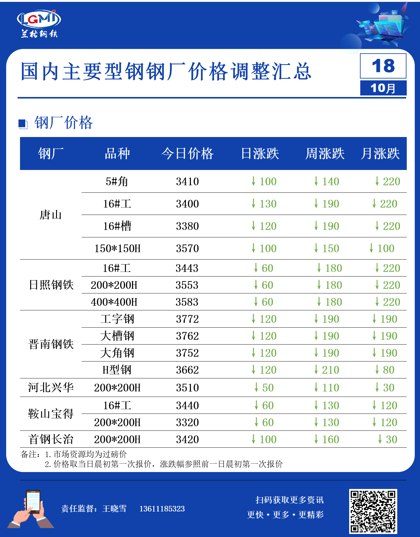 • 10月18日(9点)唐山型钢厂角钢实时调价汇总