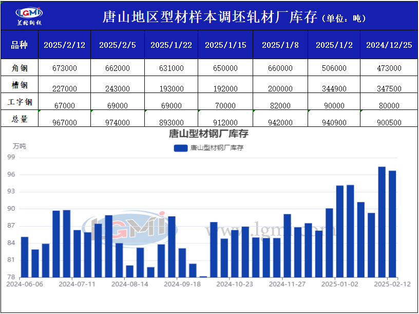 兰格调研:唐山型材成品库存调研(2月12日)