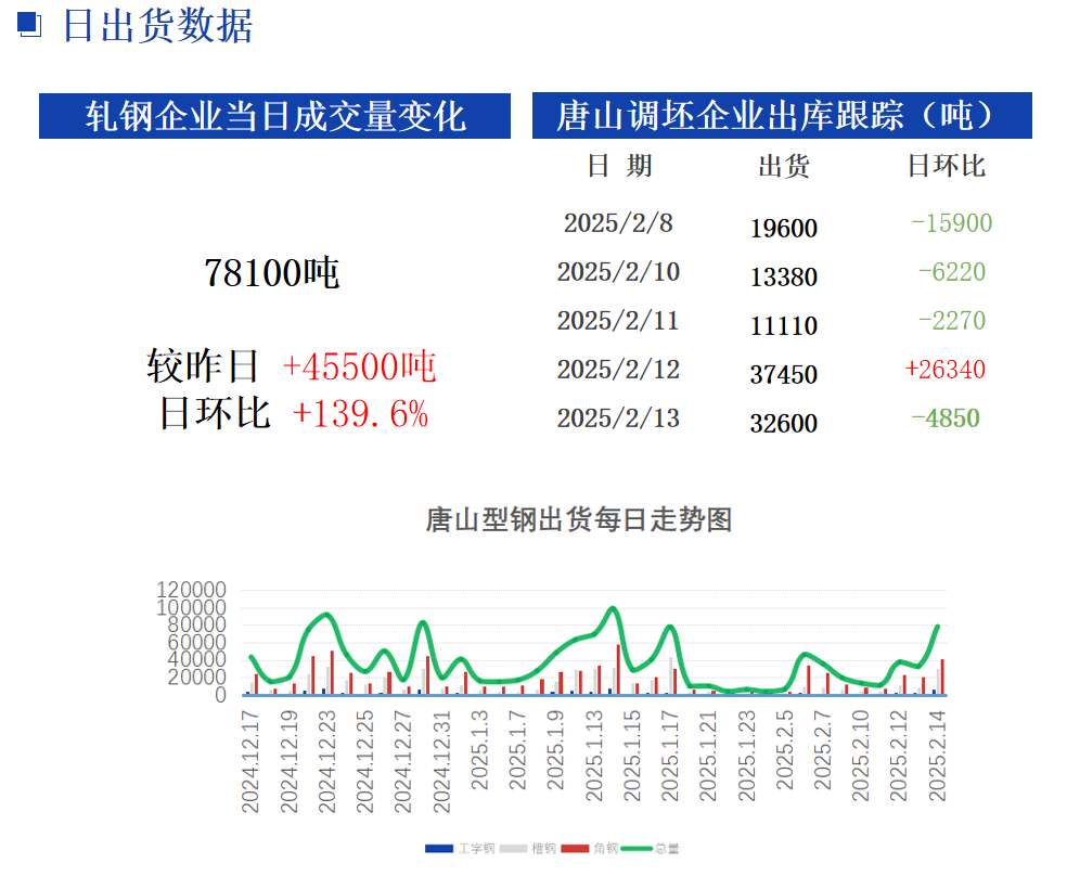 兰格调研:据统计截止16:30唐山24家型材钢厂出货总量约78100吨,较上一交易日升幅139.6%,其中工字钢7000吨;槽钢30000吨;角钢41100吨。