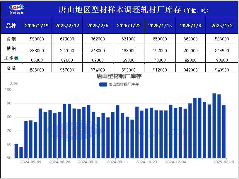 兰格调研:唐山型材成品库存调研(2月19日)