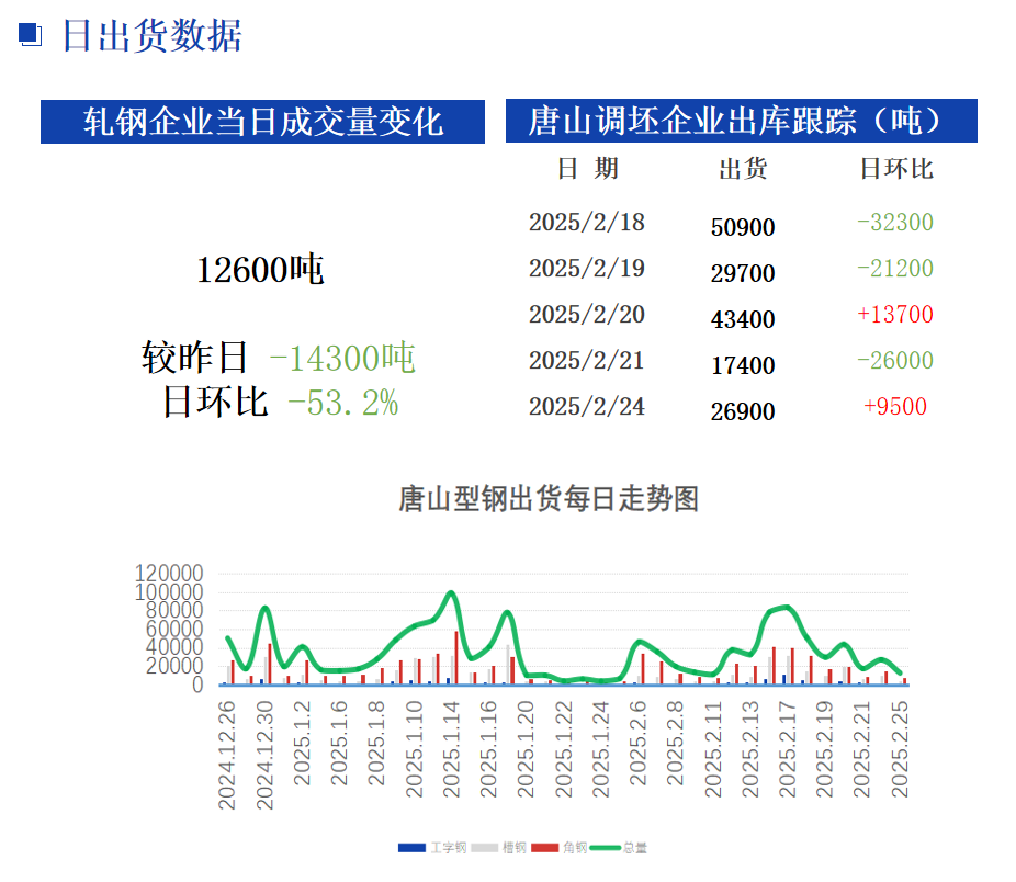 兰格调研:据统计截止16:30唐山24家型材钢厂出货总量约12600吨,较上一交易日降幅53.2%,其中工字钢700吨;槽钢4300吨;角钢7600吨。