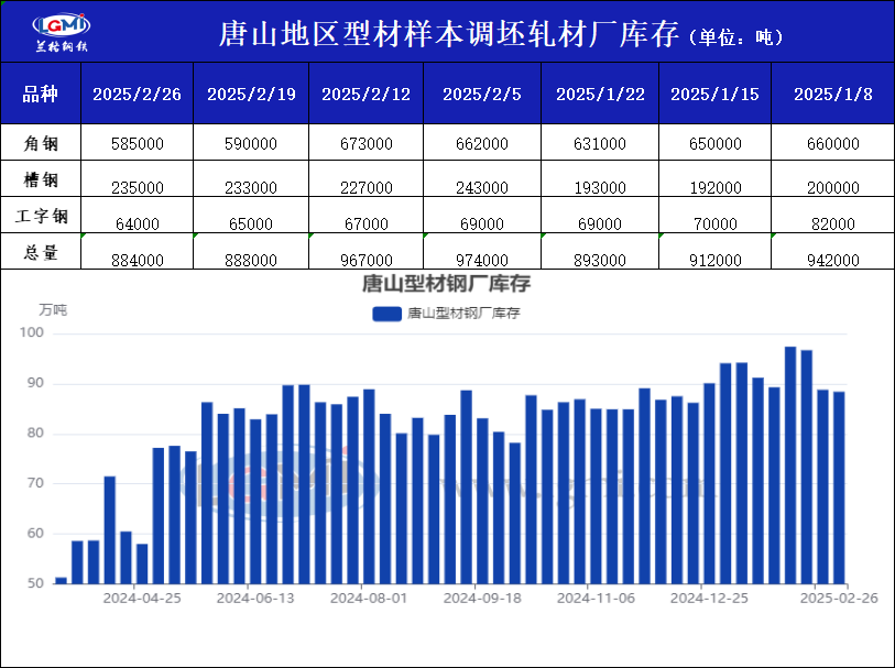 本周国内型钢价格先抑后扬,多数一线城市工角槽价格较上周维持不变,从代表城市唐山来看目前工角槽主流报价在3420-3470元,H型钢代表规格报价在3220-3250元之间。本周唐山调坯厂来看开工率为60.53%,较上周上升5.38%。年前停产的轧线陆续开始投入生产,长流程方面天柱型钢产线今日陆续检修,预计检修 20天左右,影响型钢产量约13万吨。不过整体型钢市场状态供应力充足,库存方面钢本周唐山调坯厂库存为88.4万吨,较上周减少0.4万吨,钢厂去库存压力依然较大。从成交来看近一周唐山累计出货量为15万吨,相比上周减少12万吨,由于本周前半周期螺大幅下跌拖累现货市场成交,市场成交多为低价紧缺资源,不过随着周三期螺大幅上涨乐观情绪释放,以及临近两会召开有市场利好预期带动,周三型钢盘中钢厂纷纷上调价格,下游担心价格继续冲高多数采取补库操作,市场追涨情绪强烈,钢厂生产积极性增加,整体市场呈现正反馈效应。终端方面下游开始筹备全年计划,需求逐步释放,订单多为小批量释放,从钢厂贸易商反馈来看,多数对两会抱有乐观预期,对3月份行情有上涨期待,综合来看预计本周型材市场价格上涨运行。 |