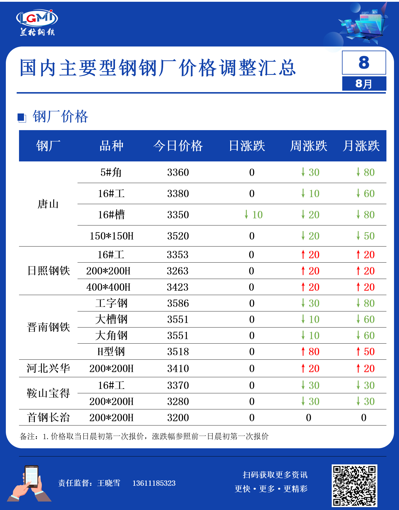8月8日型钢钢厂调价汇总
