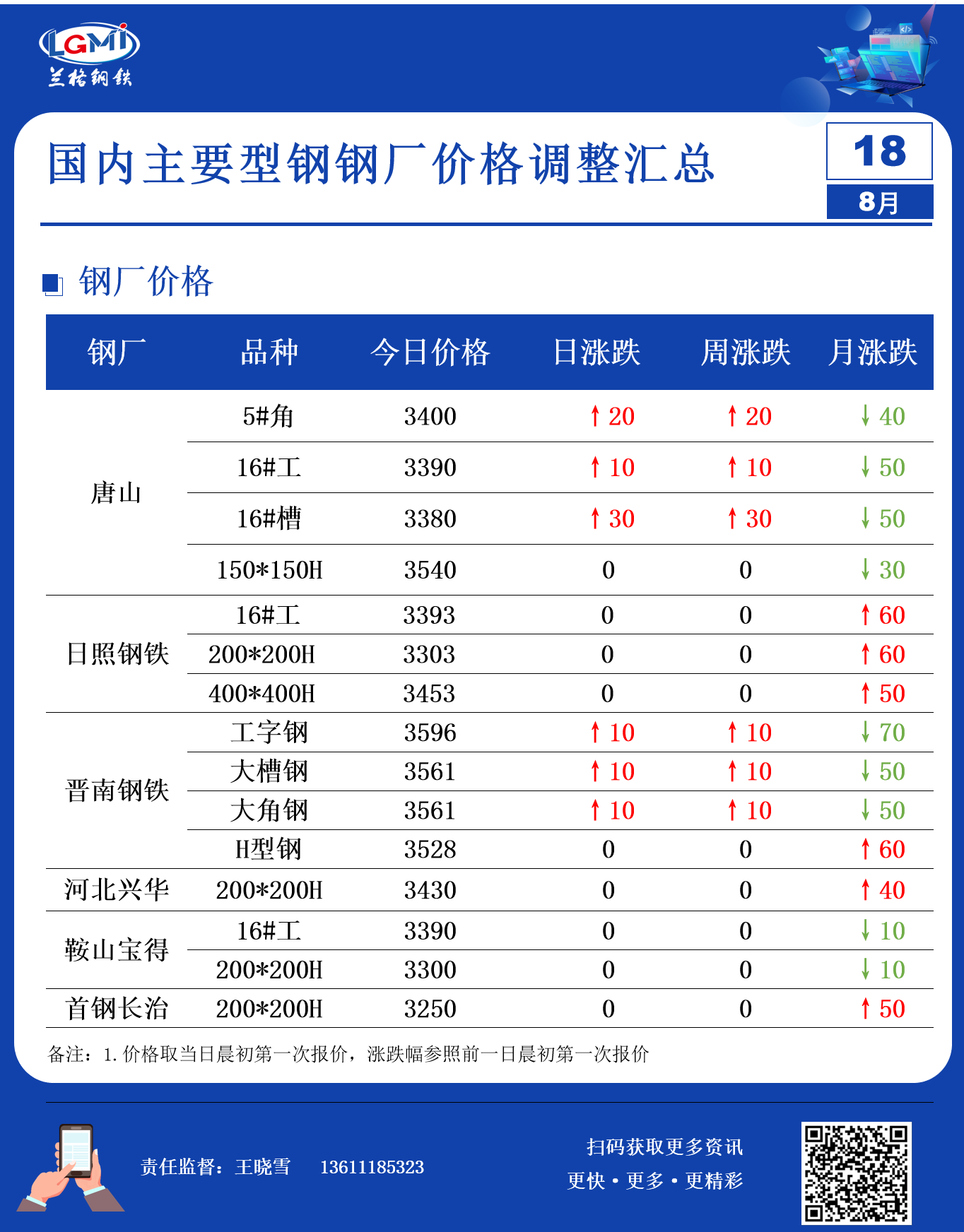 8月18日型钢钢厂调价汇总