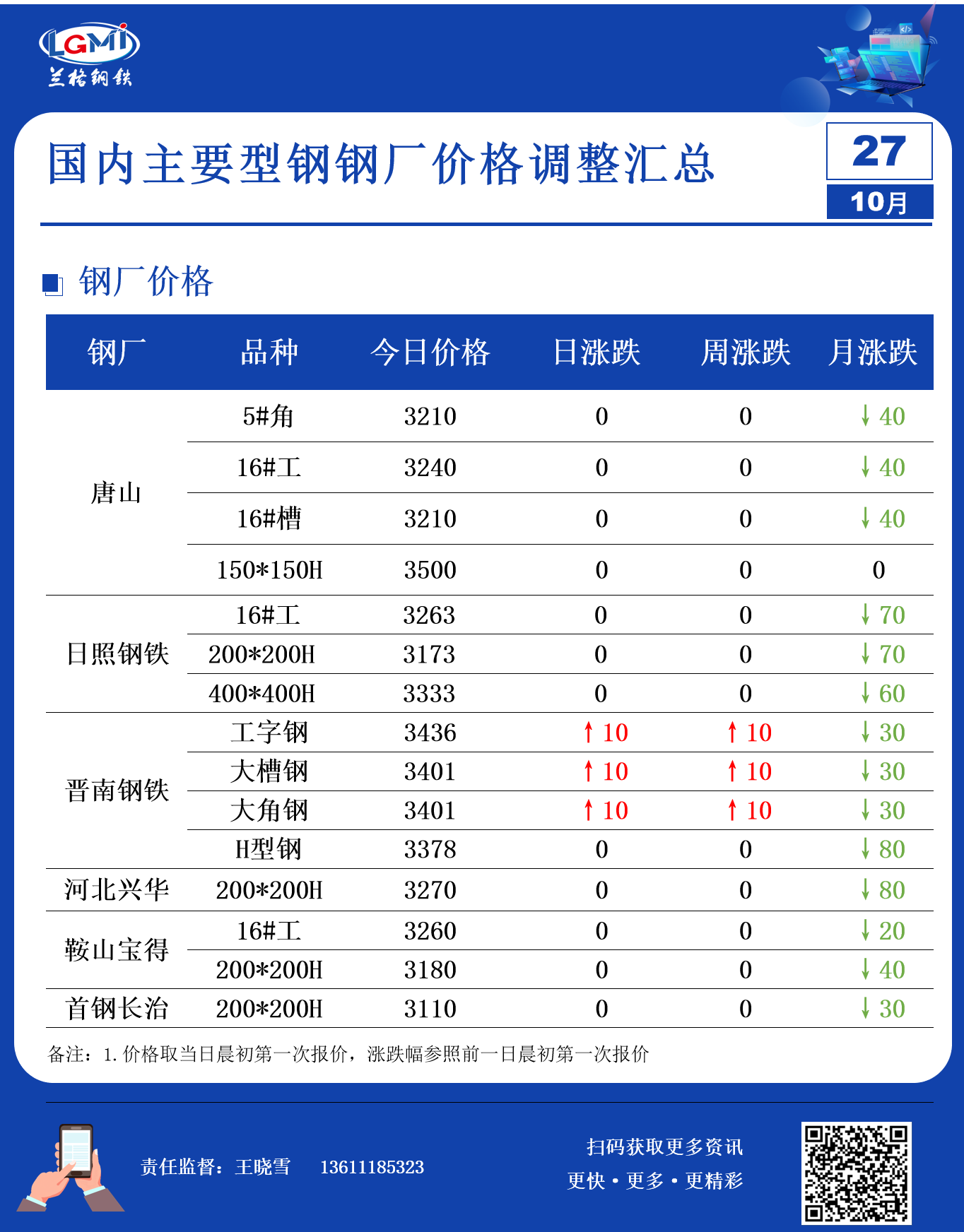 • 10月27日型钢钢厂调价汇总