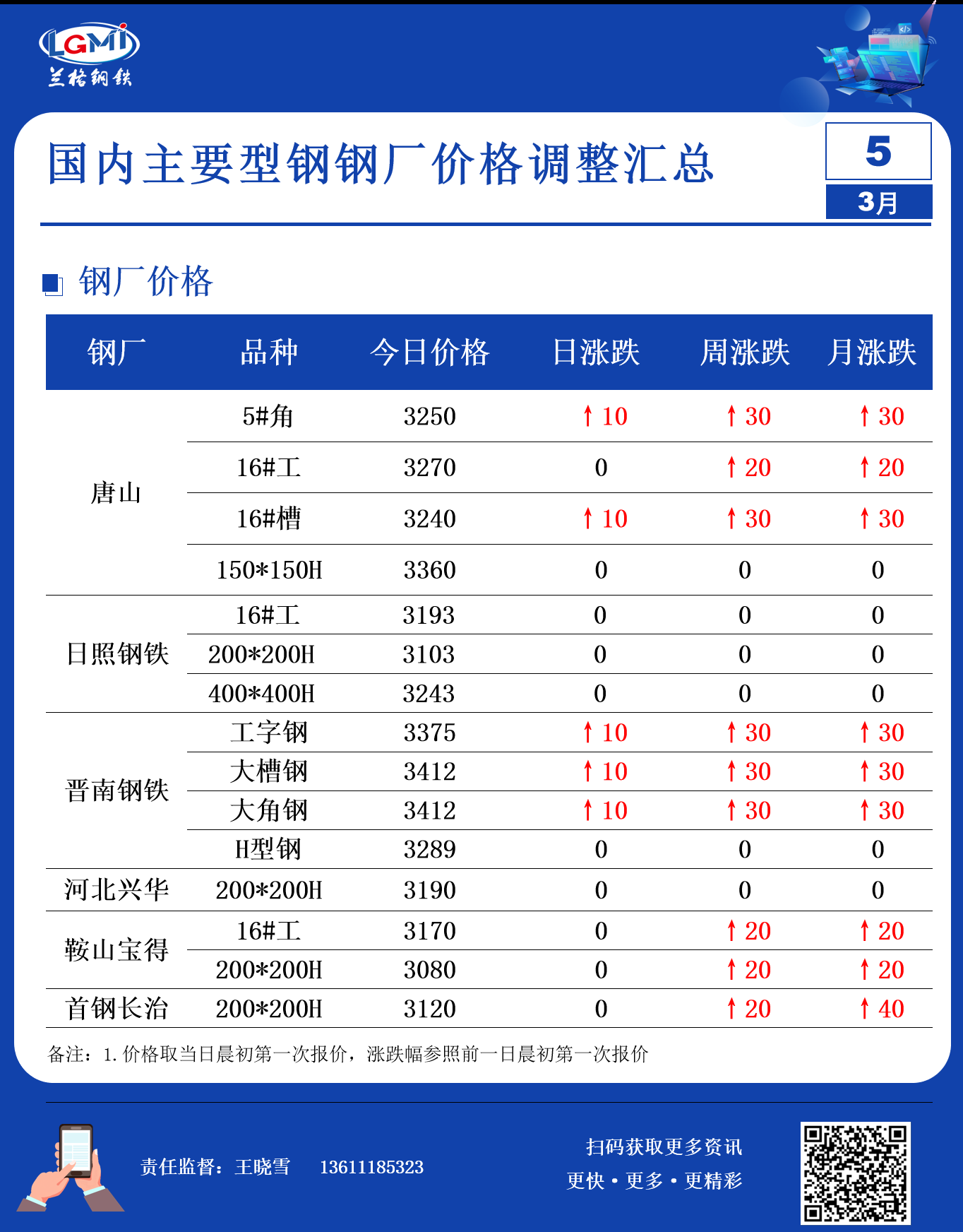 3月5日型钢钢厂调价汇总