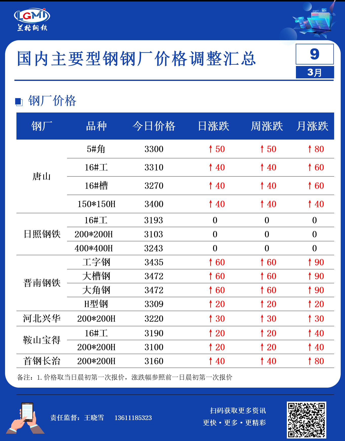 • 3月9日型钢钢厂调价汇总