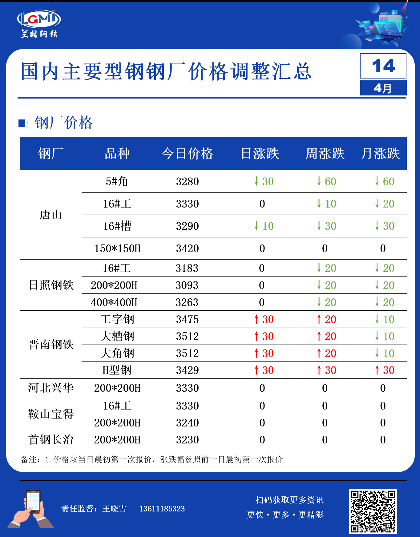 • 4月14日型钢钢厂调价汇总